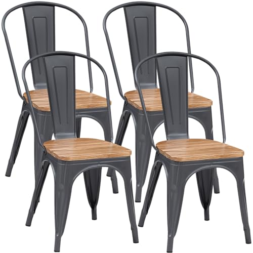 Lot de 4 chaises métalliques industrielles avec dossier et s...