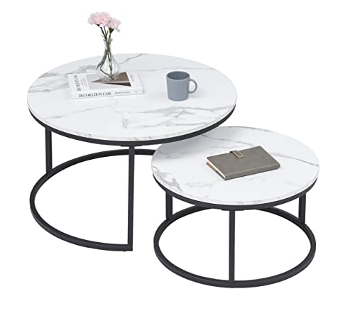 GrandCA Lot de 2 Tables Basses Rondes Imitation Marbre, Gran...