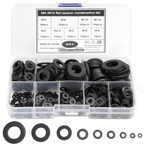 Rondelles Plates Noir, 9 M2 à M12, Acier Carbone, 1 Boîte Pl...