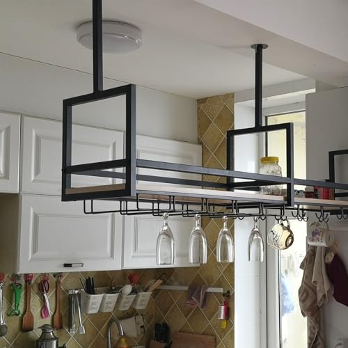FUYAO Rack Vin Plafond Étagère Rangement Flottant Bar Cuisin...