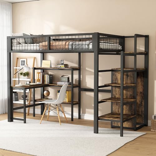 NQSLDM Mezzanine Lit Superposé, 140x200 cm, Armoire Encastré...