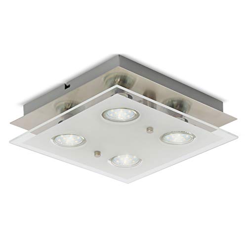 Plafonnier LED B.K. 4 spots, métal & verre, 4 LED GU10 3W