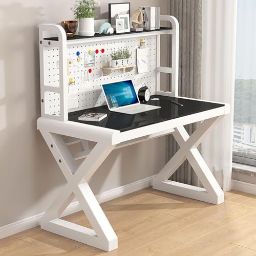 Bureau d'ordinateur verre trempé avec panneau perforé et éta...