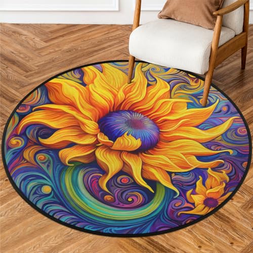 Grand tapis rond de 1,5 m, lavable, antidérapant, pour salon...