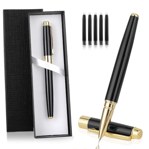 Cobee stylo plume luxe métal, bordure laquée noire, pointe f...