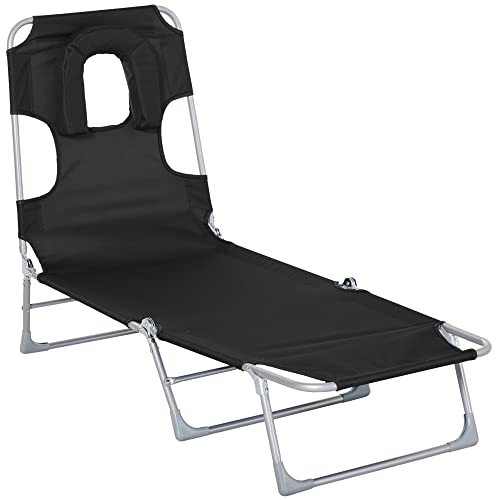 Outsunny Chaise Longue Pliante, Bain de Soleil, avec appui-t...