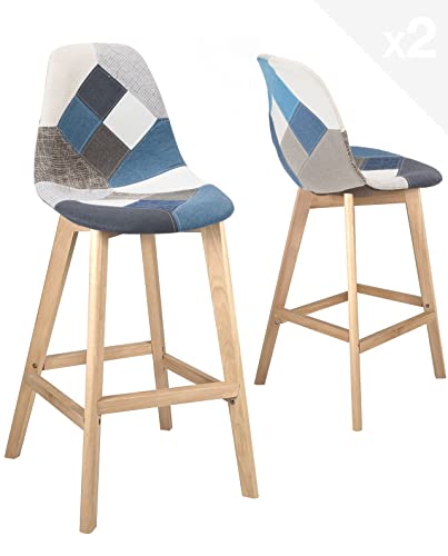 Chaises Bar Patchwork Rembourrées Slick Lot 2 Bleu