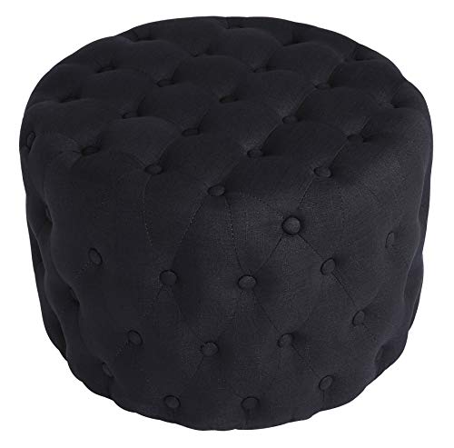 Tabouret bas Chesterfield rond en tissu noir, tabouret bas b...