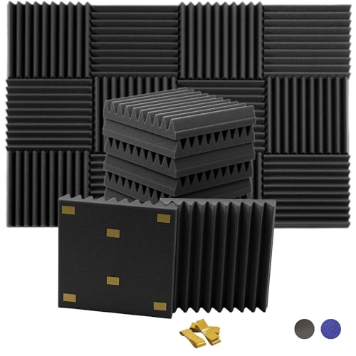 ROVSON Lot de 12 Panneaux de Mousse Acoustique avec Autocoll...