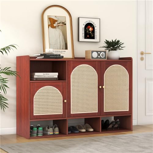 Buffet élégant En Rotin De Couleur Noyer Avec Portes Cintrée...