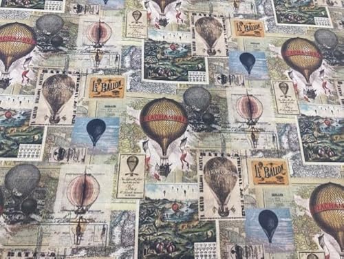 Popeline coton multicolore montgolfières paysage marron 1m x...