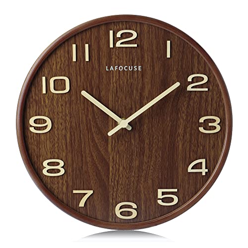 Horloge murale vintage bois marron silencieuse 3D rétro élég...