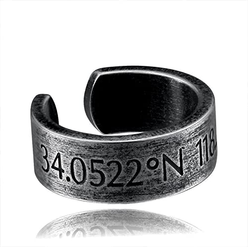 Rétro noir Latitude acier hommes anneaux réglables Punk créa...
