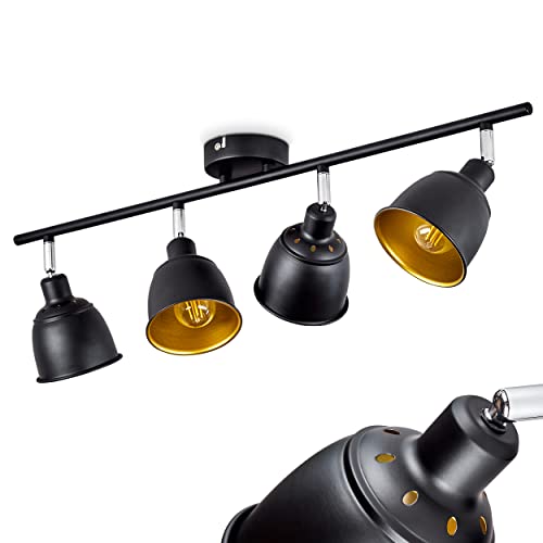 Plafonnier Tina métal noir & or, 4 spots pivotants rétro-ind...