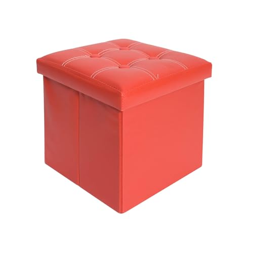 Pouf Simili Cuir, Dimensions: 30 x 30 x 30 cm (Rouge)