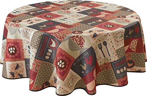 Linge de Jules Nappe Anti-Taches Chicken Rouge Ronde 160 cm