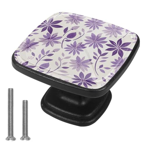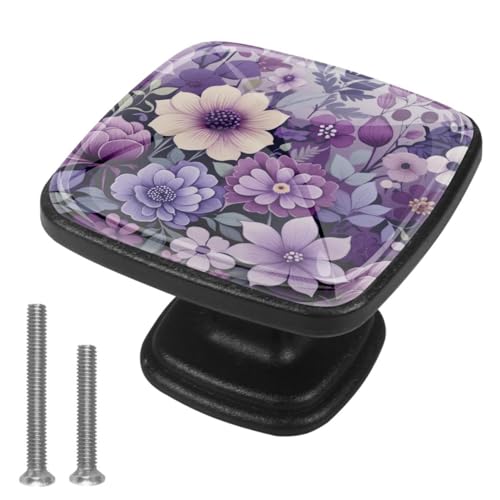 Lot de 4 boutons d''armoire noirs à motifs carrés pour armoi...