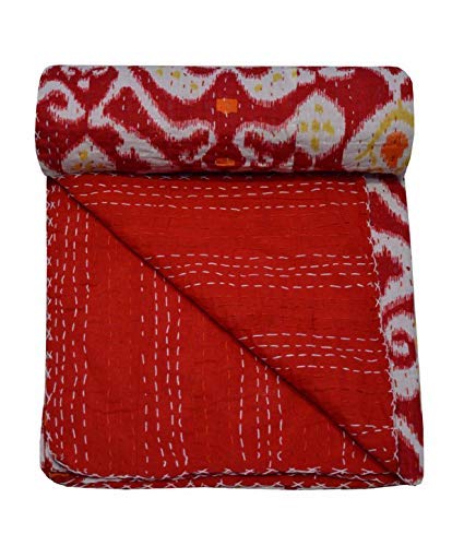 Couvre-lit indien Ikat imprimé Kantha