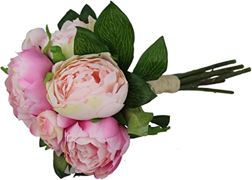 GMMH Bouquet de 32cm Fleurs artificielles Soie Rose Clair
