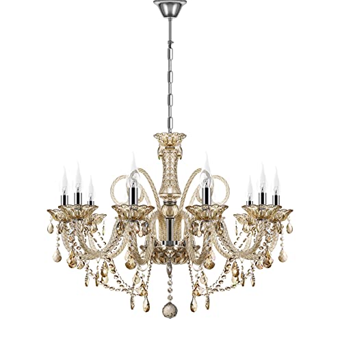 Lustre Cognac Cristal 10 Bras Suspension Lampe de Plafond