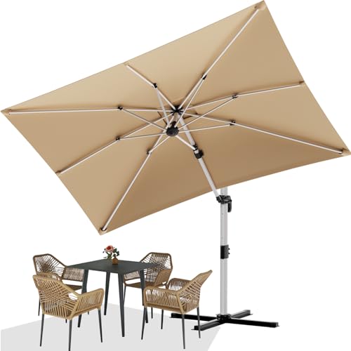 Parasol Déporté 300x380x260cm Aluminium Inclinable Toile Pro...