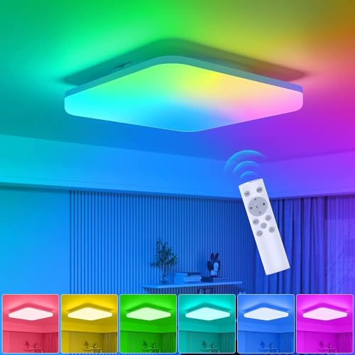 Plafonnier LED dimmable 2700k, 6RGB, IP44, 18W, lampe carré...