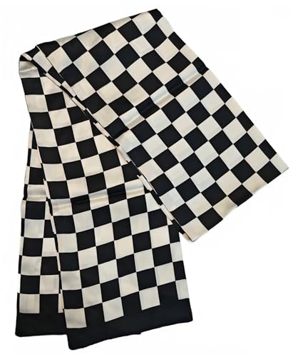 Gimiro Satin Soie Double Fleurs Plaids Noir Blanc 150x16cm