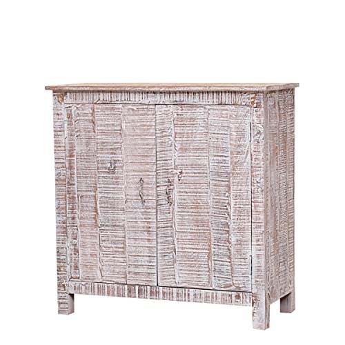 A. Indust. Petit Buffet Indien Rustique Bois Recyclé Blanc 9...