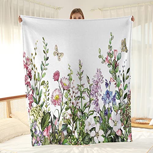 Couverture Polaire 180x200 cm Fleurs, Plaid Polaire Papillon...