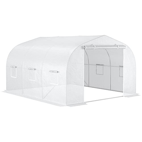 Outsunny Serre Tunnel de Jardin 3,5L x 3L x 2H m Porte +6 fe...