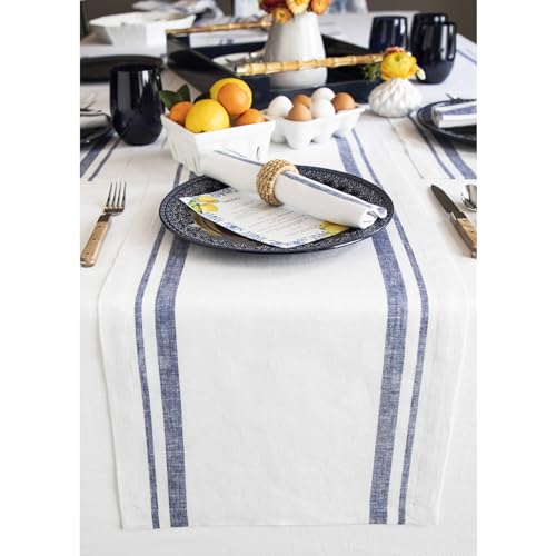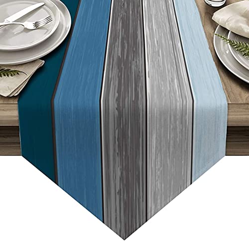Chemin de Table Lin Toile Jute 33x180cm Bleu
