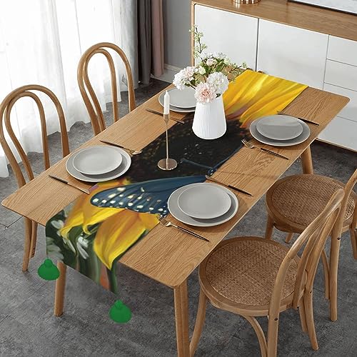 Chemin lin rustique tournesols papillons bleu 35.6x152.4 cm