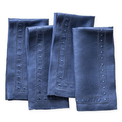 Lot de 4 serviettes en lin ajourées et brodées, lavables en...