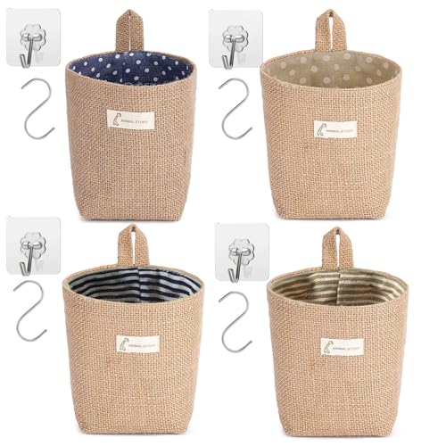 4 Sacs de Rangement Suspendus en Coton et Lin