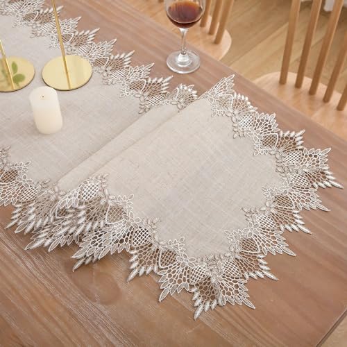 Ligne de table en lin brodé dentelle neutre 40,6 x 182,9 cm...