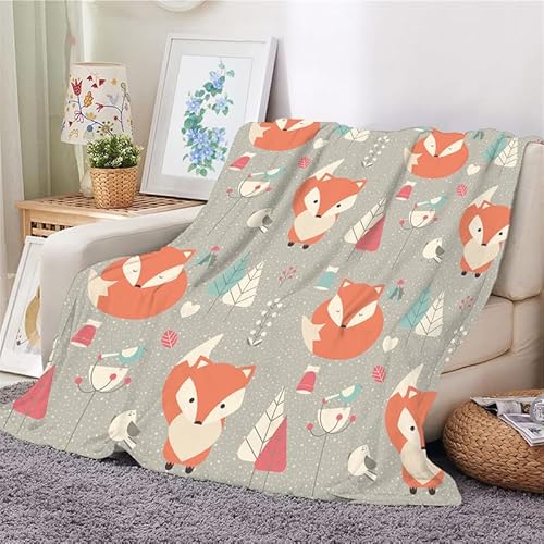 Plaid Polaire 150x200 Petit Renard Orange Flanelle Marron Ch...