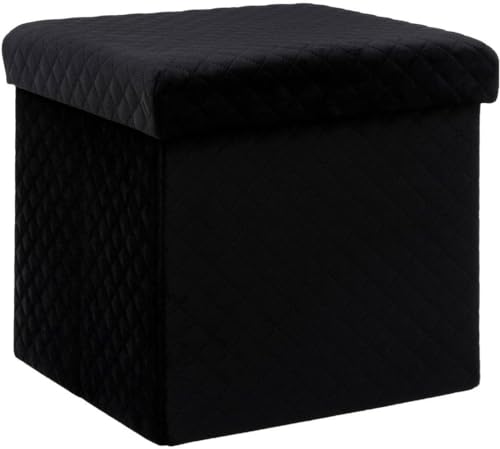 Pouf Cube Rembourré Lin Noir 31x31cm