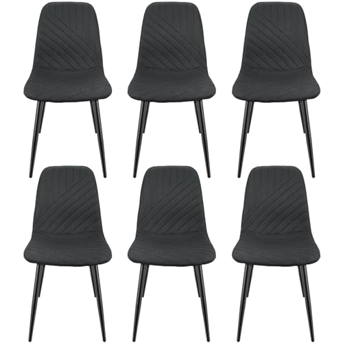 JiJian 6 Chaises Salle Cuisine Lin Rembourrée Noir