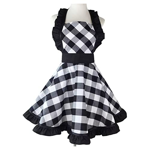 Tablier de cuisine noir et blanc buffalo plaid rétro