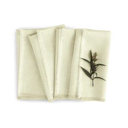 Loto Solino 4 serviettes de table lin à franges 100% pur lin