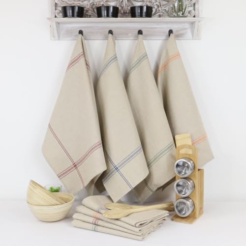 LINANDELLE - Lot 12 torchons de cuisine Lin NORMANDIE Orange...
