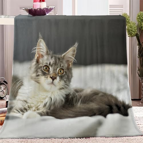 Flanelle Motif Chat Maine Coon Plaid Lavable Canapé Décorati...