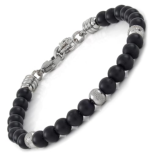 10:10 Bracelet avec pierres noires, perles en acier inoxydab...