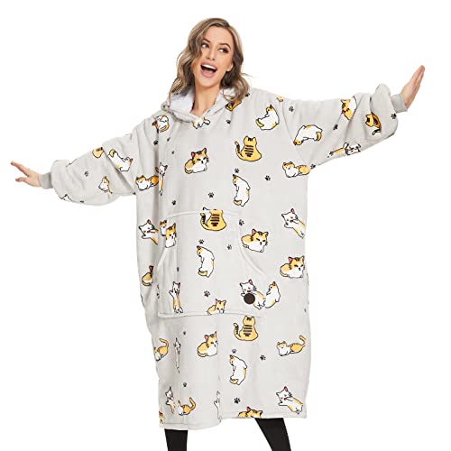 Bedsure Plaid à Capuche Adulte - Plaid Polaire avec Manche F...