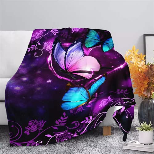 ZZXHG Plaid Polaire 220x240 cm Papillon Violet Microfibre