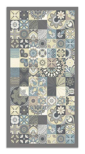 Panorama Tapis Hydraulique Vinyle Oriental Bleu 40x80 cm