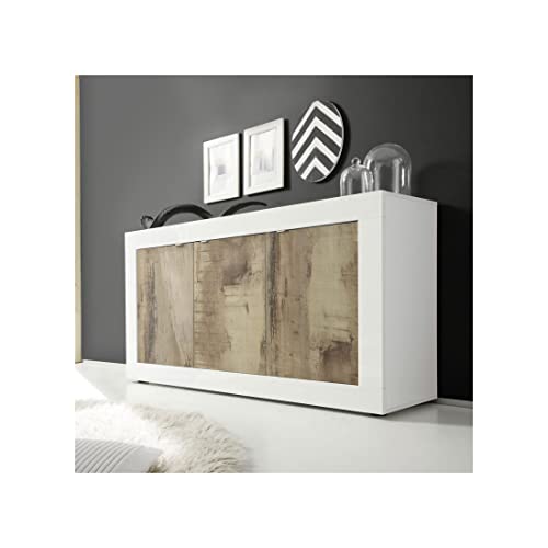 Tousmesmeubles Blanc Planches Bois Buffet 3 Portes 160 x 43...