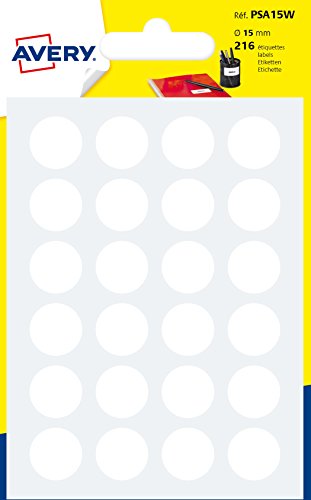 AVERY 15mm Blanches 168 pastilles Planche A6