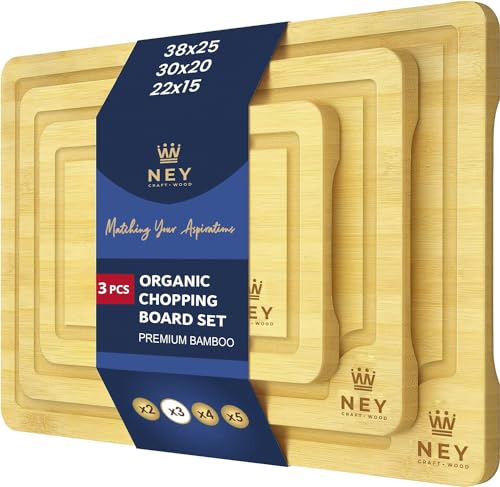 Lot de 3 grandes planches à découper 2 en 1 en bois de bambo...