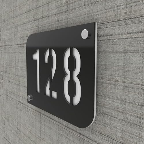 DECOHO - Plaque numéro de rue/maison noire design avec fond...